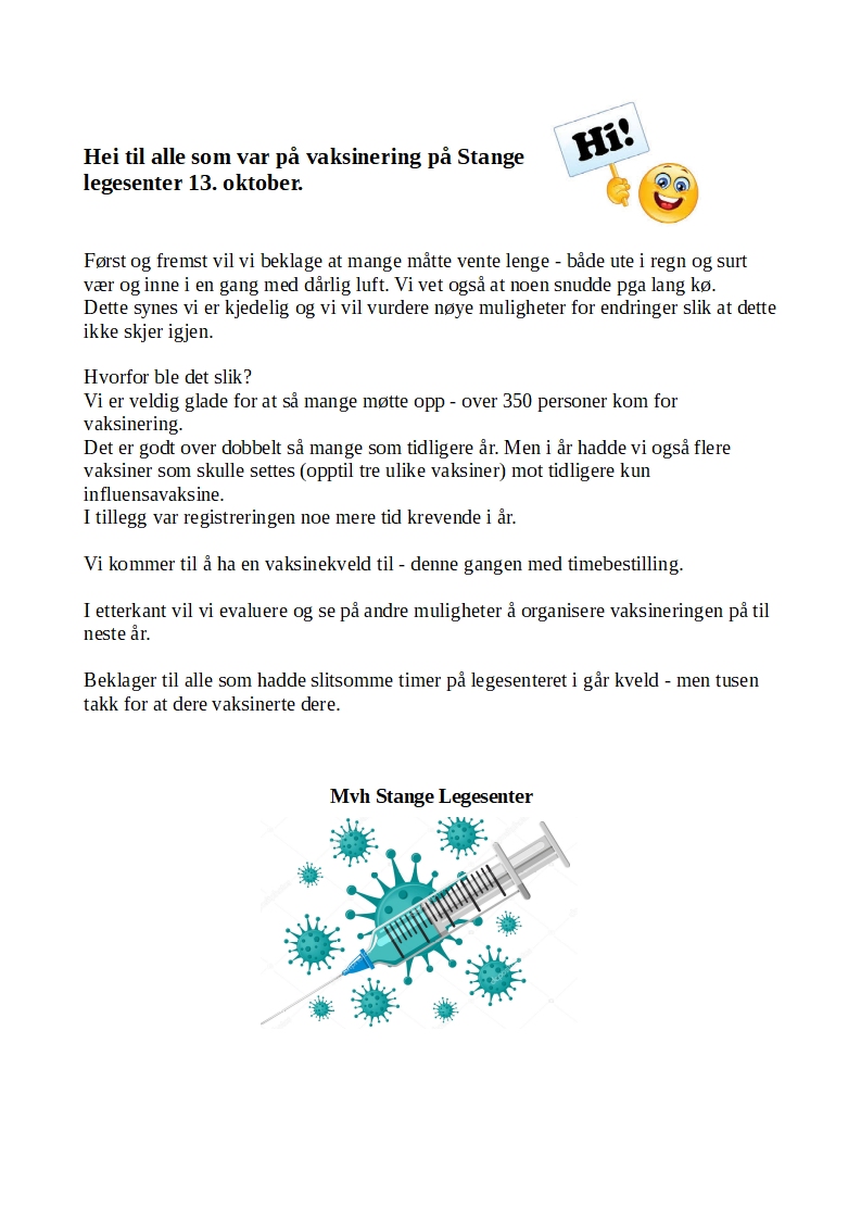 GDPR (General Data Protection Regulation) er innført ved Stange legesenter – se under generell info og eget oppslag på legesentret.